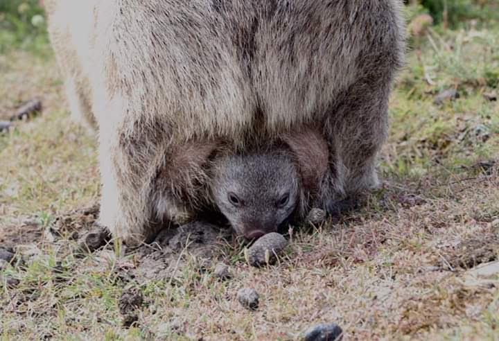 Mummy and baby wombat on Maria Island, Tasmania