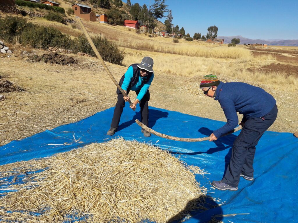 Threshing wheat under the blazing Andean sun while singing Yellow Submarine, slowly